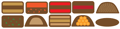 These are the illustrations I have chosen, I have tried to go with variety, but also show the content within the chocolates. The idea behind these chocolate illustrations is that you can see what the chocolate will look like when bitten into. What I think is lacking about Roses was that there was no description or image of the chocolate, there was just the wrapper and a name, this doesn't give anything away. Having it be a surprise could be a good thing, but it doesn't work very well with Roses as they are all similar flavours anyway.